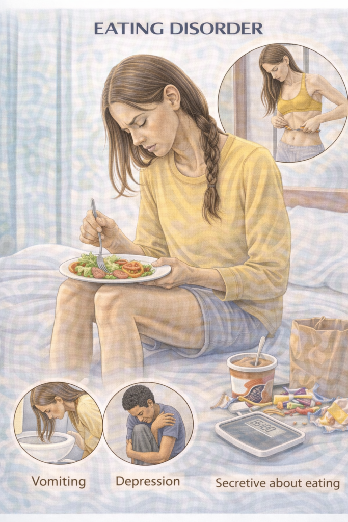 Illness history: early GI disorders, Type 1 diabetes (insulin misuse risk)