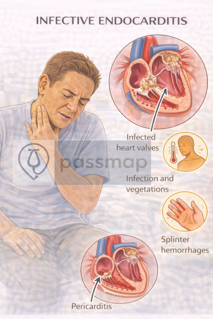 Infective endocarditis (IE) is an infection of the endocardial surface of the heart, typically involving the heart valves. It is a life-threatening condition requiring prompt diagnosis and treatment.
